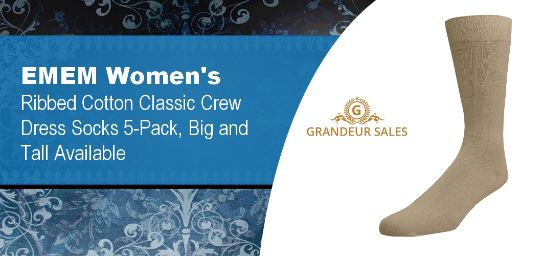 EMEM Women's Ribbed Cotton Classic Crew Dress Socks 5-Pack, Big and Tall Available