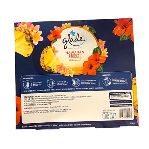 Bring the invigorating aroma of a tropical vacation into your home with Glade Hawaiian Breeze PlugIns Scented Oil. This scent diffuser is designed to create an atmosphere of relaxation and tranquility, transporting you to the lush landscapes of Hawaii. Glade Hawaiian Breeze PlugIns Scented Oil is more than just a scent diffuser. It's a customizable experience. The diffuser allows you to adjust the intensity of the fragrance according to your preference, ensuring your room always has the perfect amount of Hawaiian Breeze. Offers a captivating Hawaiian Breeze scent, combining notes of ripe pineapple and floral hibiscus.