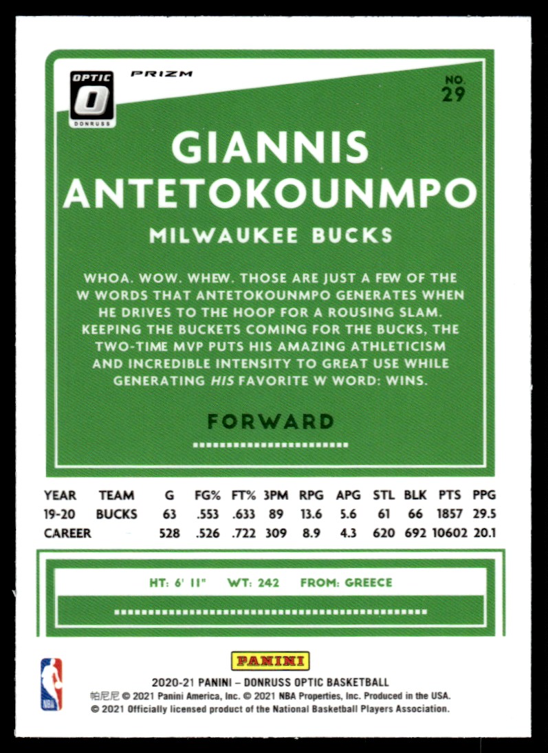 2020-21 Donruss Optic Blue Velocity Giannis Antetokounmpo Milwaukee Bucks #29