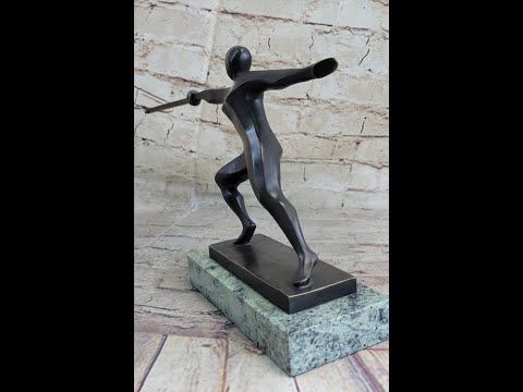 This dynamic bronze sculpture captures the intensity and precision of a fencer in the heat of competition. The fencer, poised for victory, stands with his épée extended in a strong attacking stance, reflecting his unwavering focus and determination to overcome his opponent. Every detail of his form, from the tension in his stance to the sharpness of his gaze, conveys the disciplined artistry and skill required in the sport of fencing.