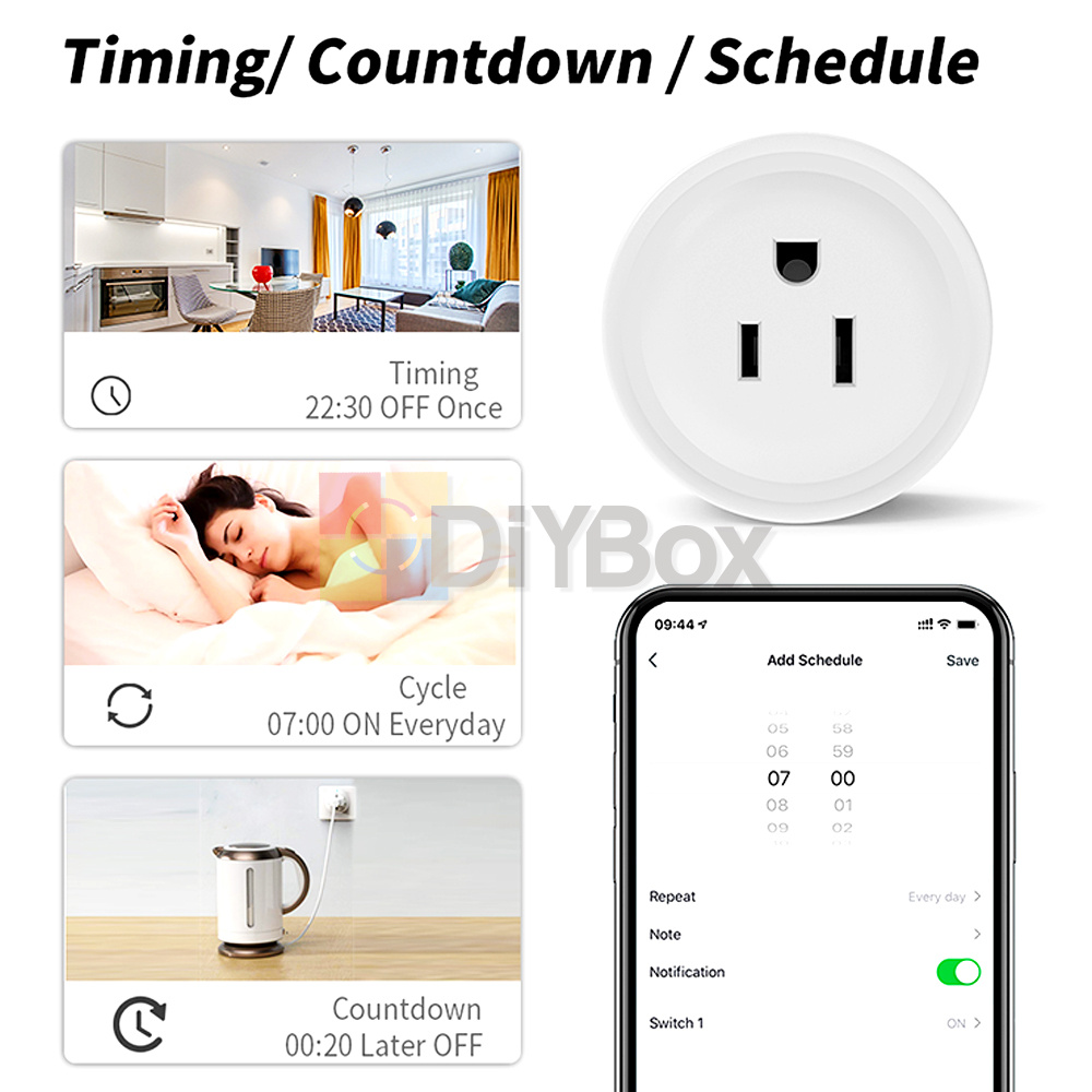 10A Smart Plug Voice Wifi Mini Socket Outlet Remote Timer with metering US Plug