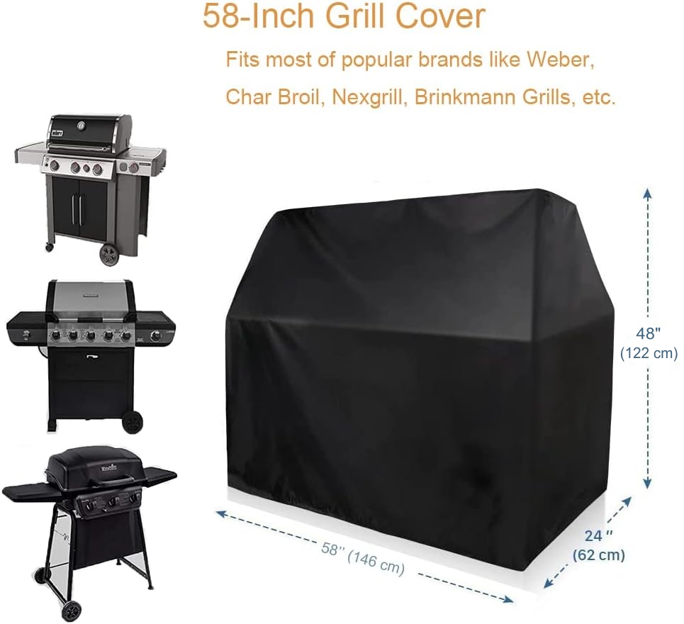 For Your Convenience - 𝗡𝗢𝗧𝗜𝗖𝗘: It is recommended to measure the size of your grill carefully before buying. To be suitable, the grill should be smaller than the barbeque grill cover (58"L x 24"W x 48"H). Not designed to cover the wheels entirely, for the grill could be moved freely with the gas grill cover on.