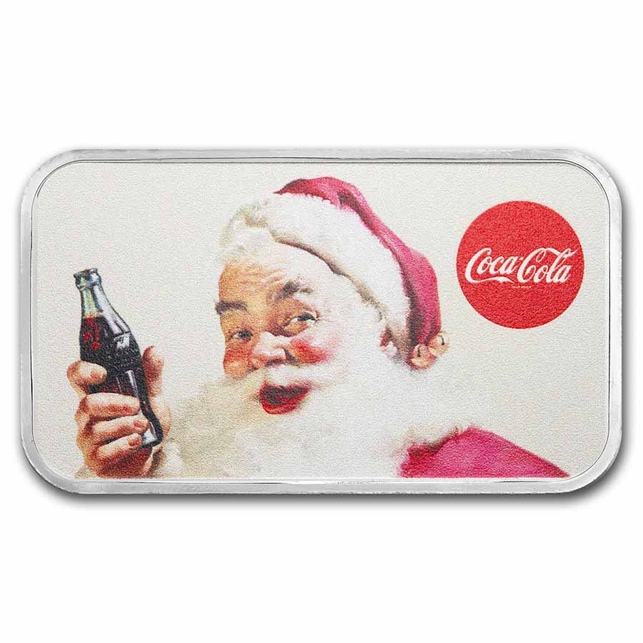 These colorized bars are ideal for giving to friends, family members or loved ones this holiday season. These silver bars truly are a gift that lasts a lifetime with classic appeal. Add this beautiful, 1 oz silver colorized Coca-Cola bars to your cart today!