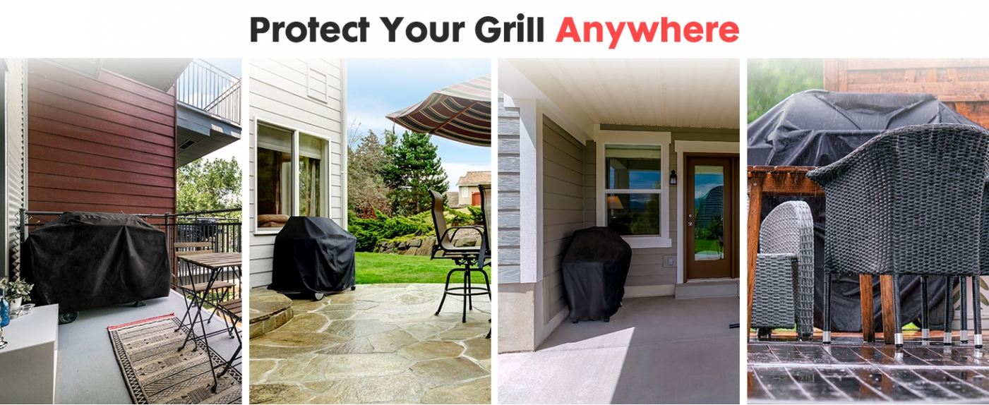 Waterproof & Dustproof - Our grill cover for outdoor grill is made of double-layer fabric. The outer layer is 100% Oxford fabric and PVC waterproof coating is on the inner. The BBQ covers can last through all seasons. No matter what the weather, it can keep your grill looking like new, preventing it from wind, rain, storm, intense sunshine, dust, snow, etc.
