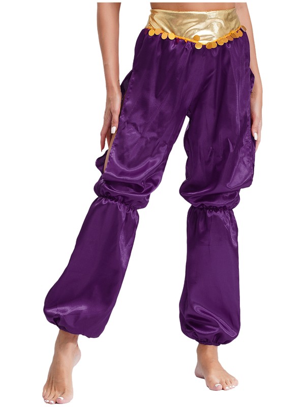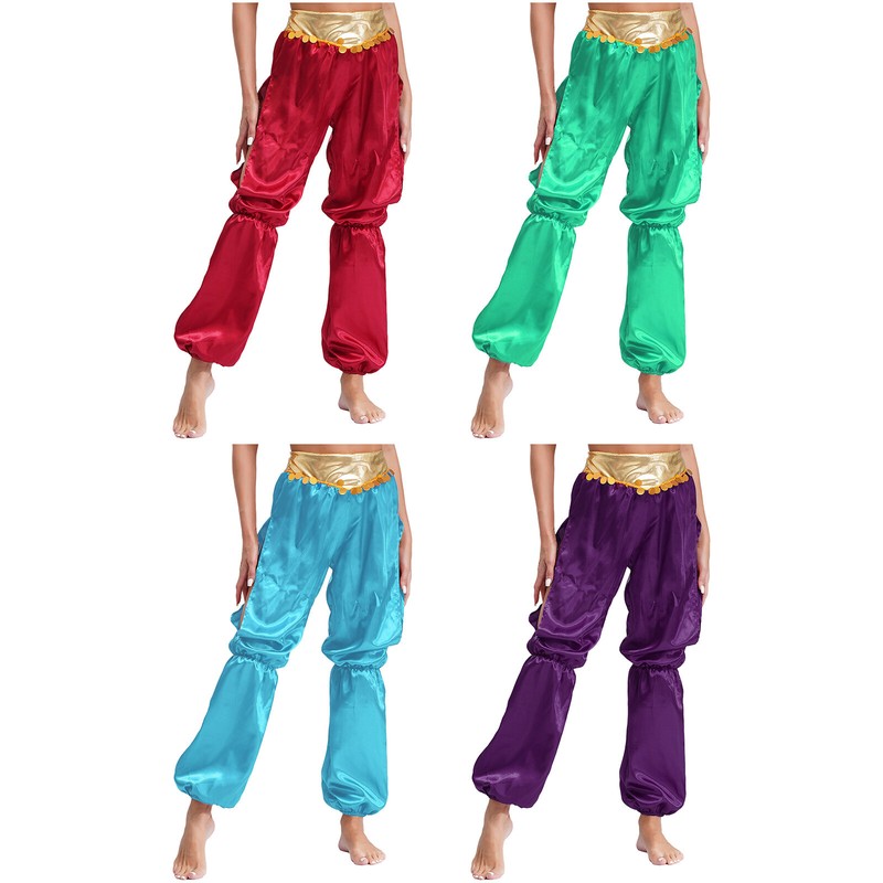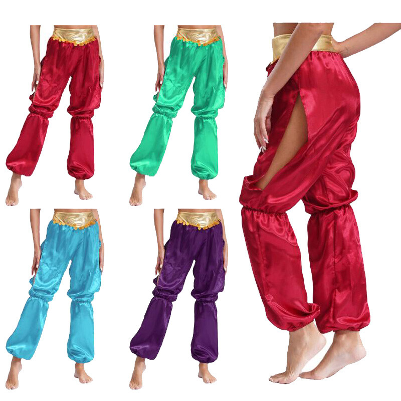 Women Pants Carnival Bloomers Belly Dancewear Metallic Costume Medieval Arabian