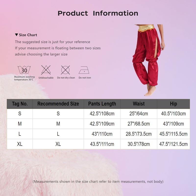 This exotic styled pants can be paired with sequin tassel crop top or hip scarf, perfectly show your graceful dance.