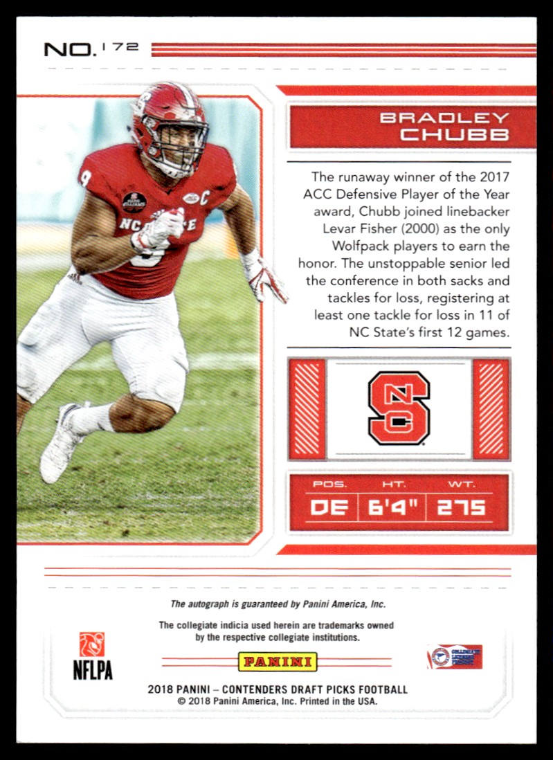 2018 Panini Contenders Draft Picks Bowl Ticket Bradley Chubb Rookie Auto 38/99