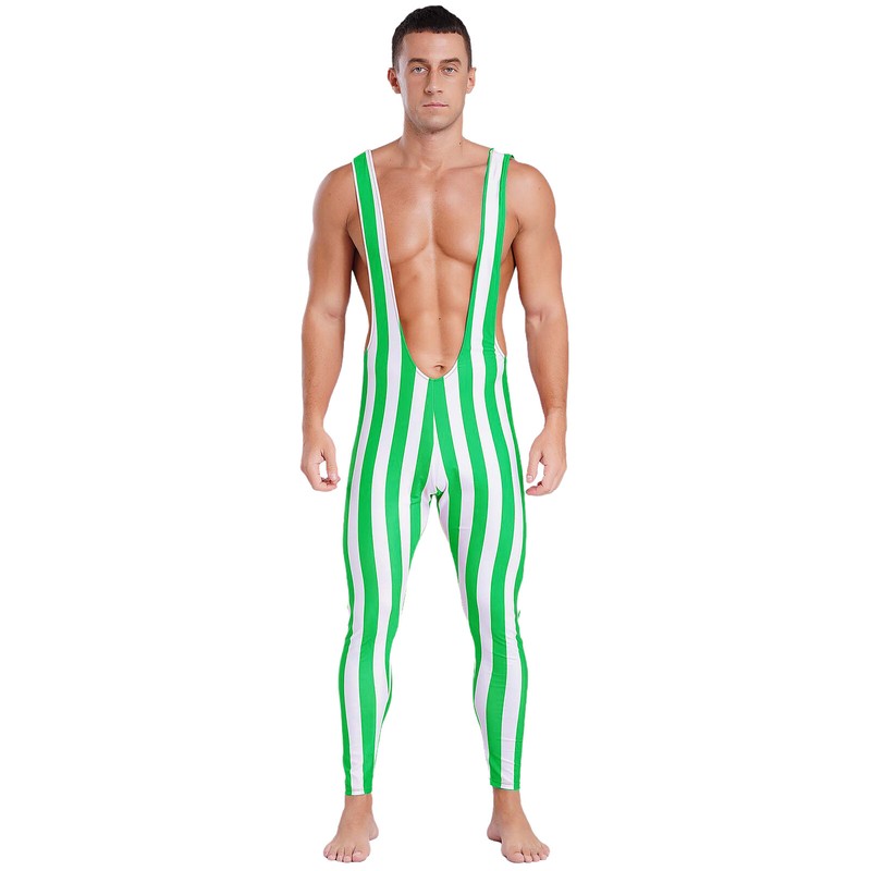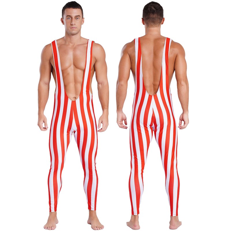 Mens Jumpsuit Breathable Rompers Masquerade Bodysuit Showing Muscle Costume
