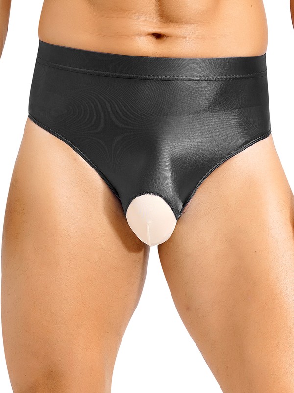 Underwear for man designs with high waist, elastic waist, open crotch, glossy and stretchy fabric, which is sexy and teasing.