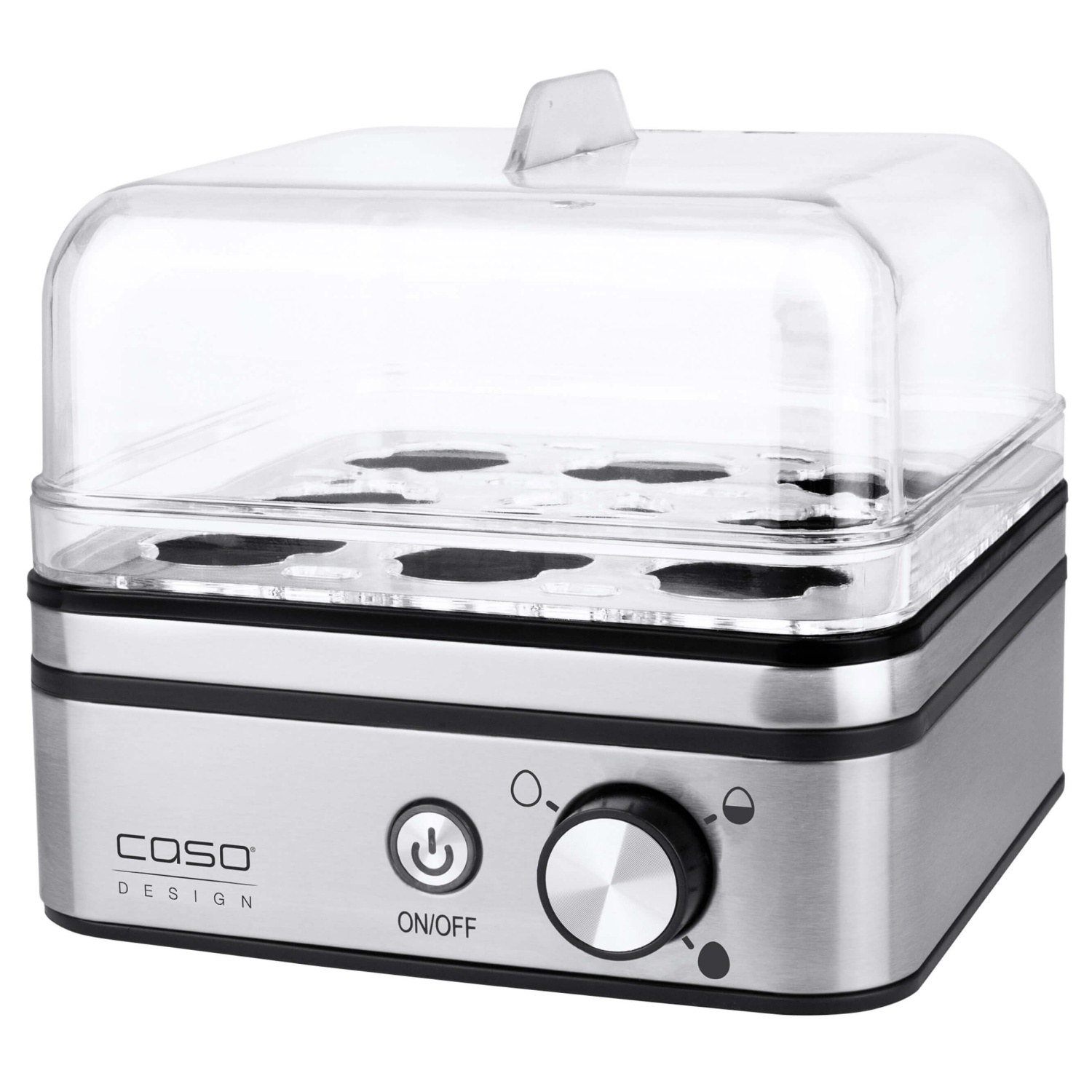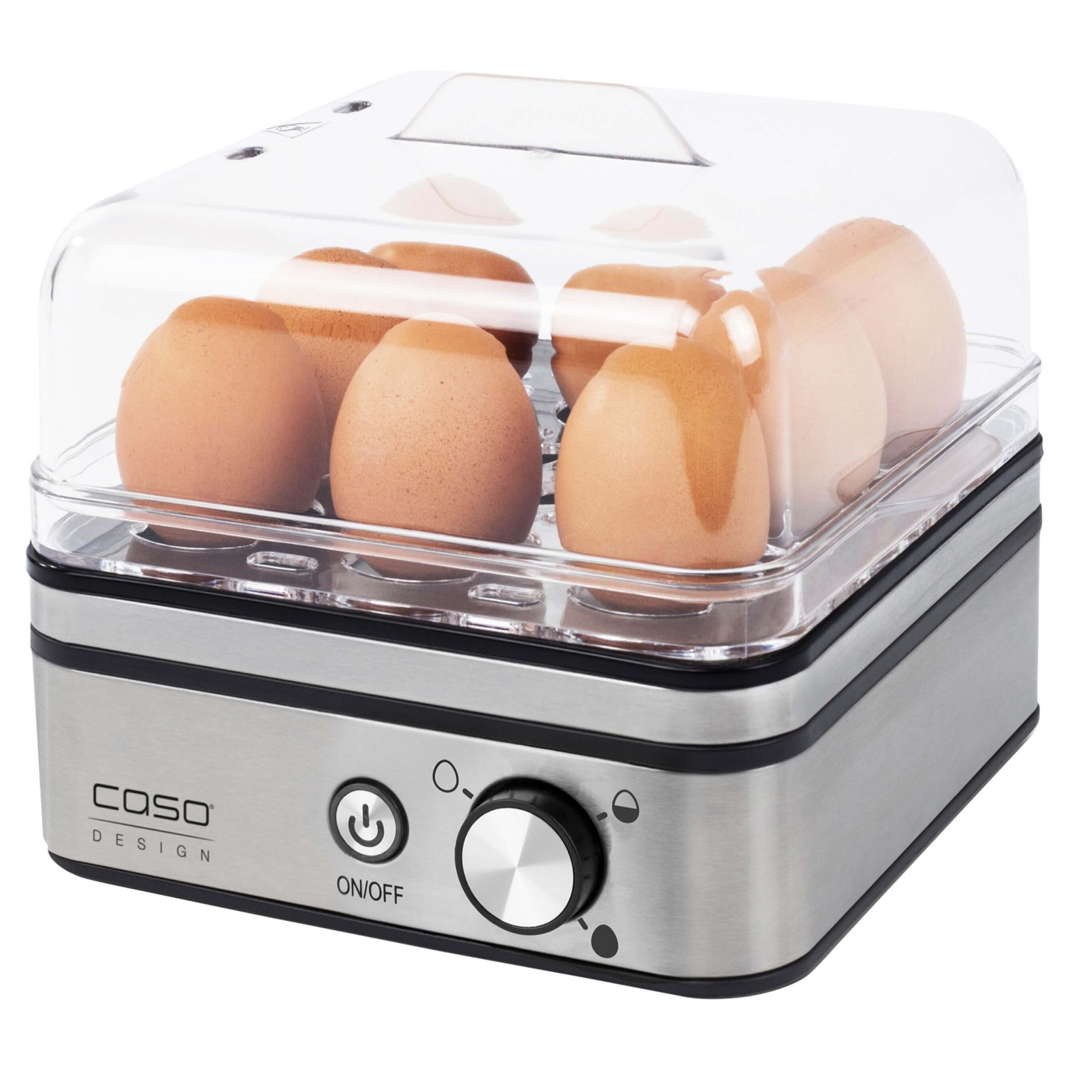 Die elektronische Regelung des Caso E8 Eierkochers schaltet das Gerät frühzeitig ab, sodass Trockenkochen, schlechte Gerüche sowie das Festbrennen von Wasserrückständen verhindert werden. Zudem weist eine LED-Betriebsanzeige auf die Funktionstätigkeit des Geräts hin. Am Ende der Kochzeit ertönt ein akustisches Signal, das Sie daran erinnert, dass Ihre Eier nun bereit zum Verzehr sind. Das Gerät verfügt über einen transparenten Kunststoffdeckel. Dadurch können Sie den Kochprozess mühelos überwachen.