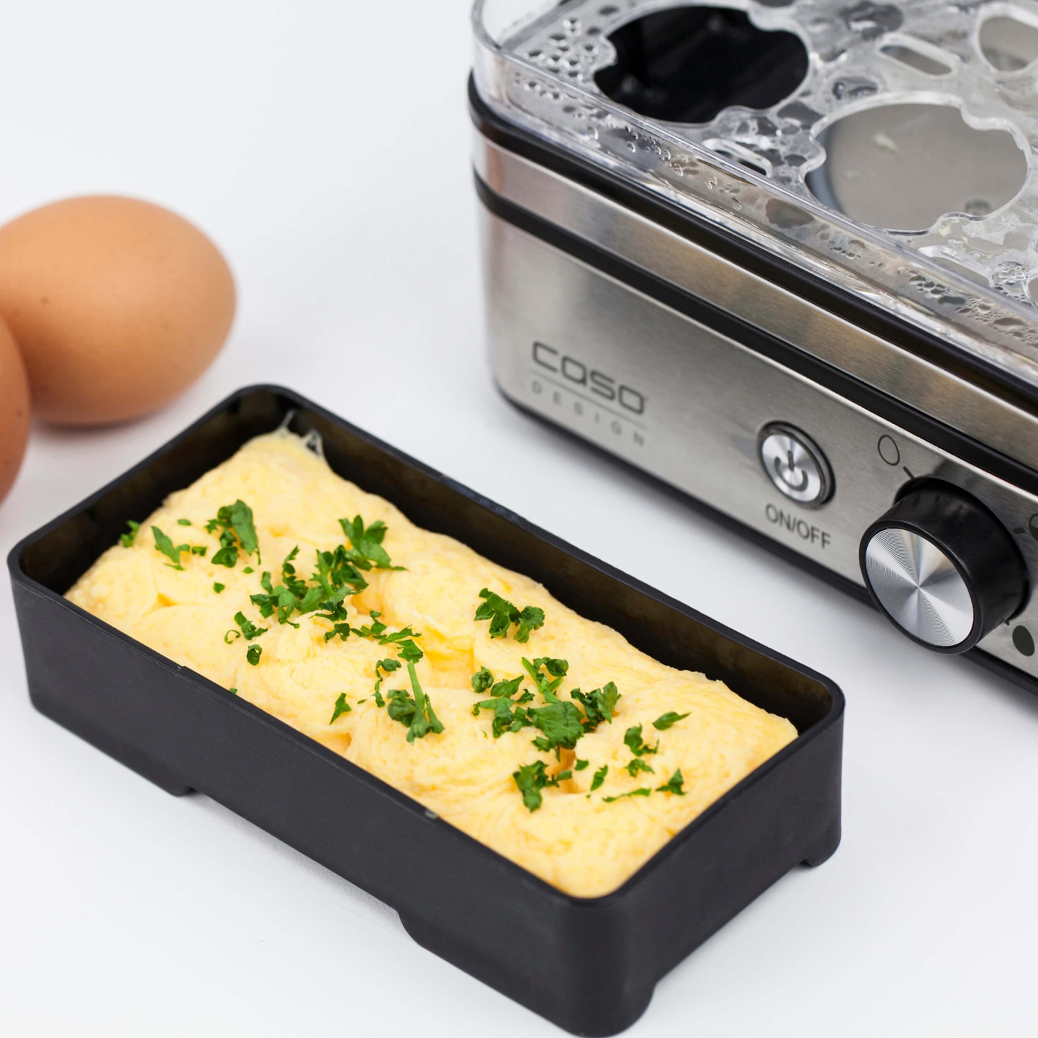 Wünschen Sie sich perfekt gekochte Eier ohne Mühe und Stress? Der Caso Eierkocher E9 für 8 Eier ist hier die ideale Lösung. Als begehrter Eierkocher bietet das Gerät genügend Platz für bis zu 8 Eier gleichzeitig. Egal, ob fürs Frühstück, Brunchen mit Freunden oder für Salate - mit diesem Eierkocher haben Sie stets die richtige Menge an Eiern zur Hand.
