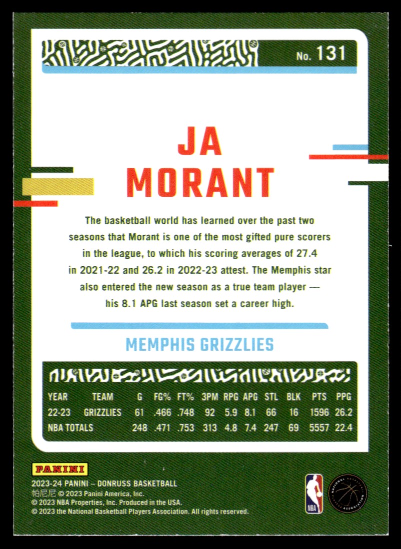 2023-24 Donruss Green Laser Holo Ja Morant Memphis Grizzlies #131
