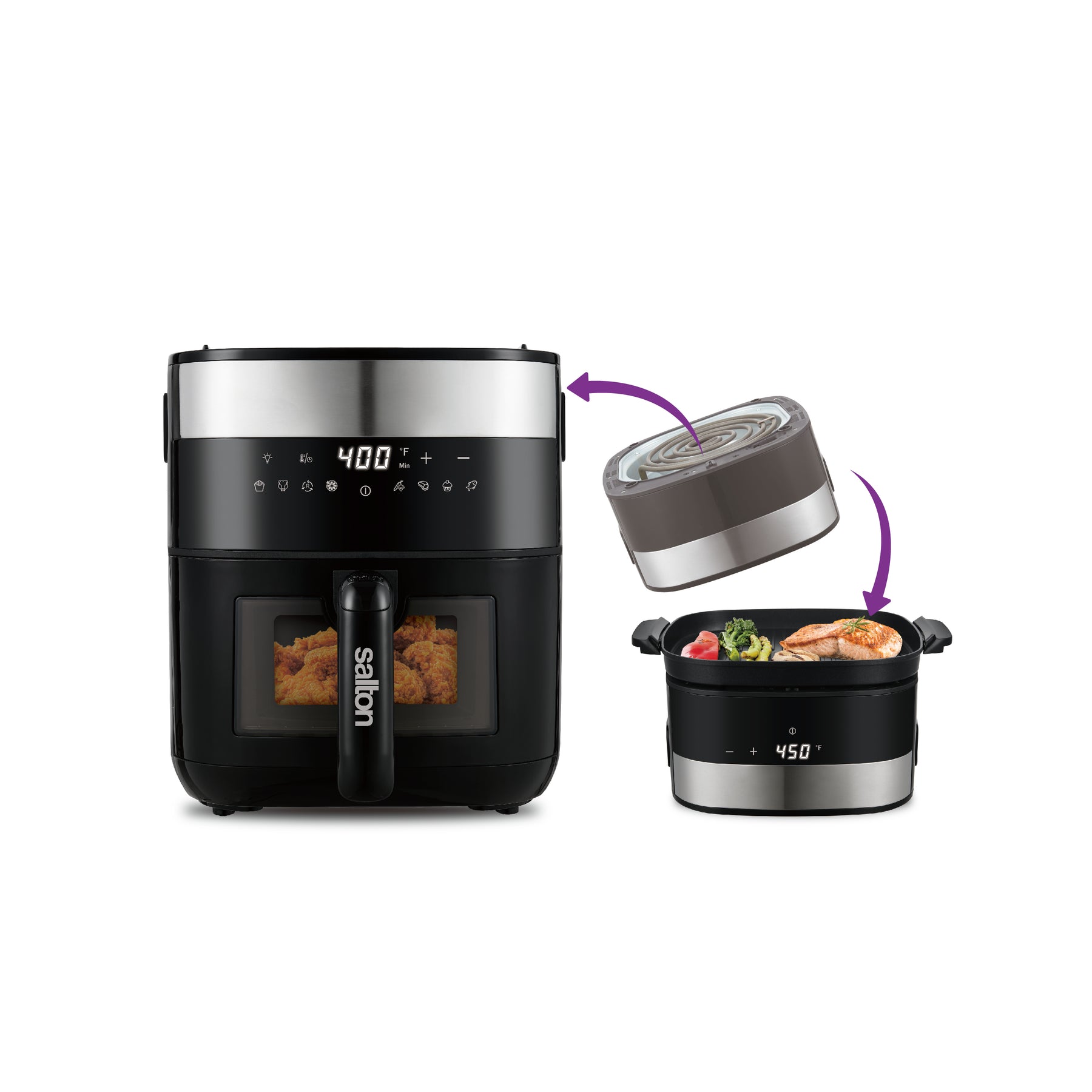 Unleash your inner chef with the Salton Flip and Cook 3-in-1 5.5 L Air Fryer, Grill, & Dehydrator, a versatile kitchen powerhouse designed to elevate your cooking experience. This innovative appliance offers precise and versatile cooking with a unique 180° flip feature, allowing you to fry and grill like a pro with ease. Stay in control of your culinary creations with the built-in viewing window. Easily check on the progress of your food without interrupting the cooking process, ensuring perfect results every time.