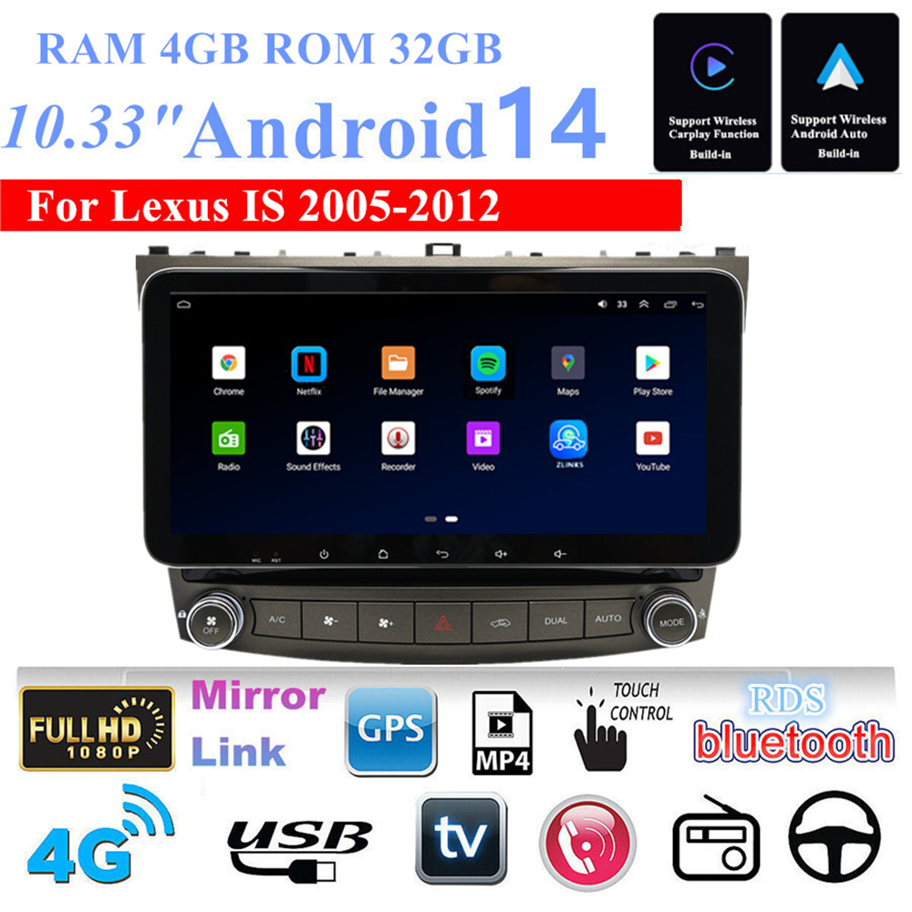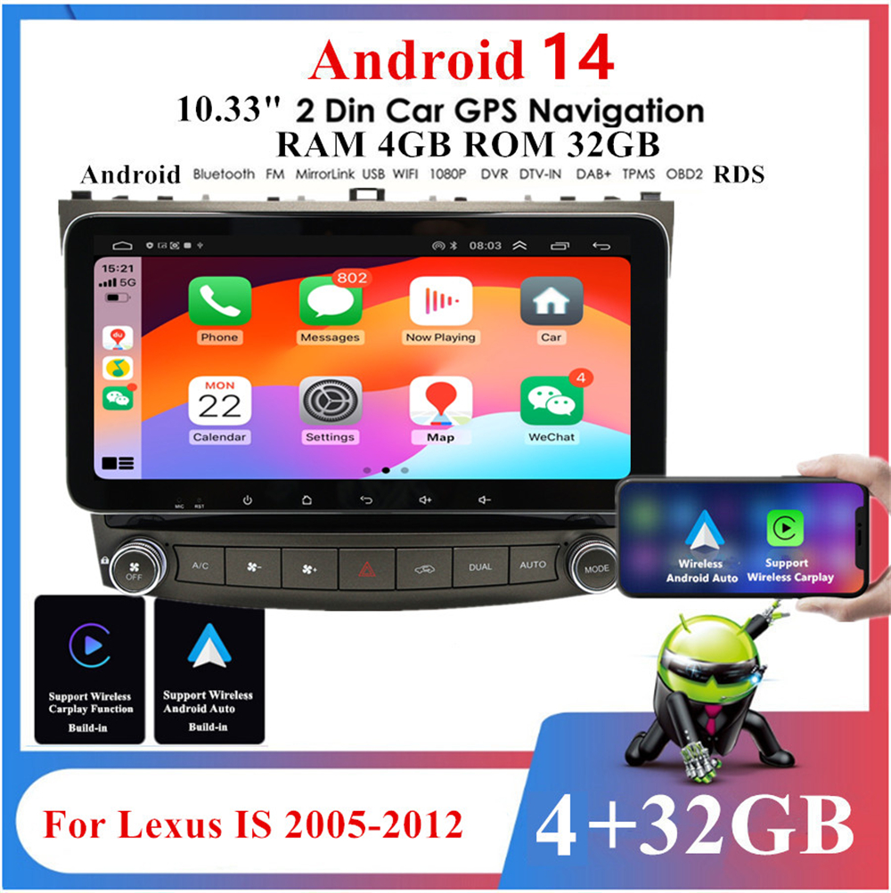 10.33'' Stereo Radio GPS Navigation For Lexus IS IS250 IS300 IS350 05-12 Carplay
