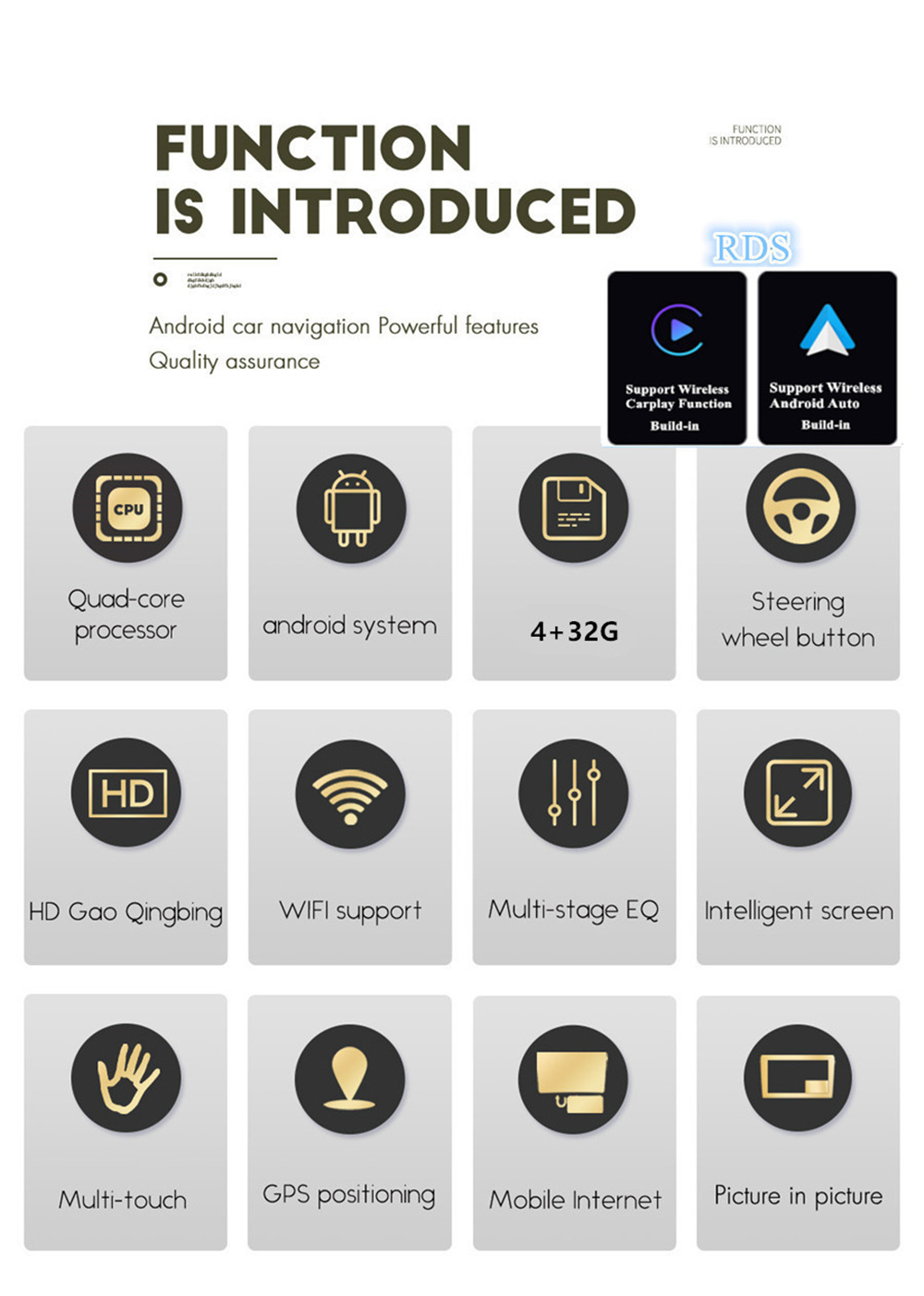 | Support Carplay/Android Auto | -Build-In Support WIFI Wireless & USB Wired Carplay And Android Auto. |