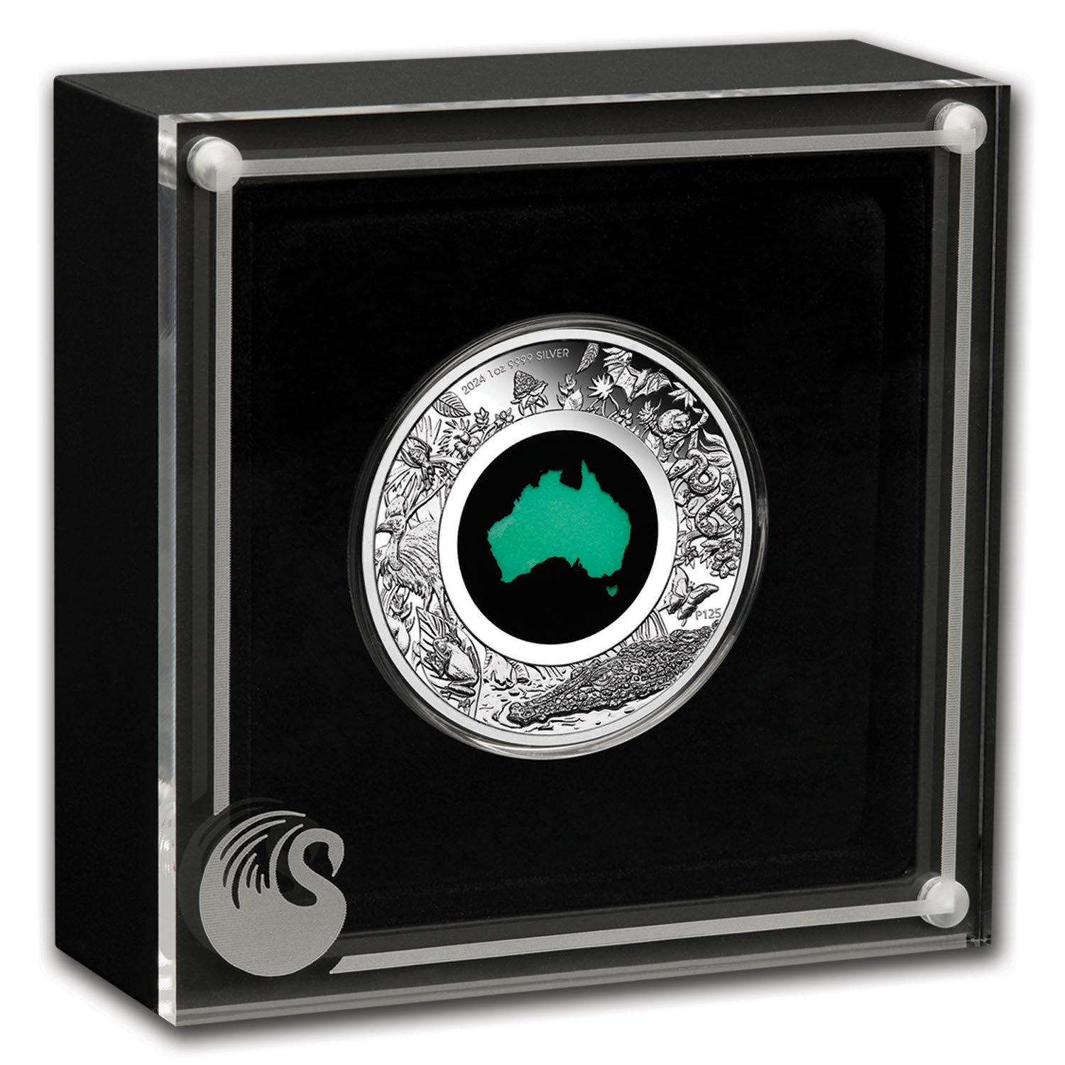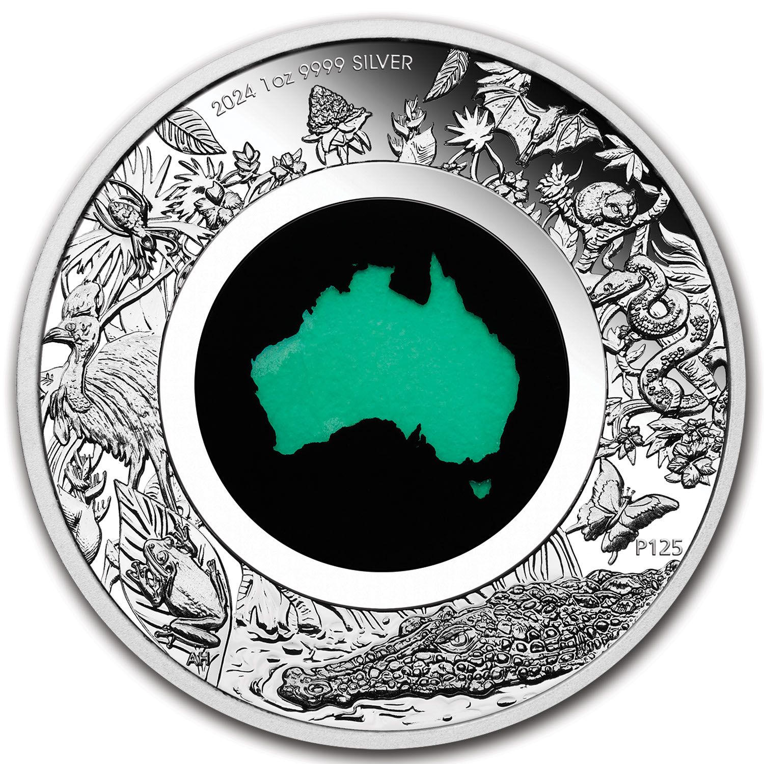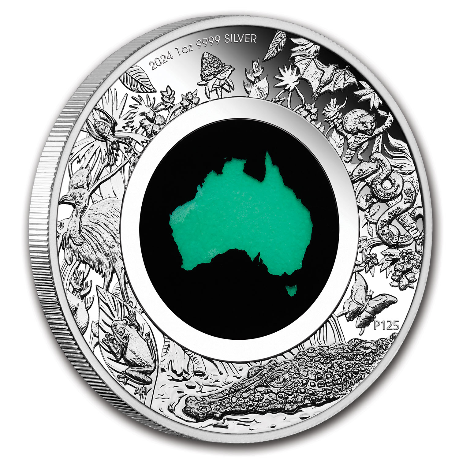 - Reverse: The coin's reverse features a chrysoprase, which is a gemstone that derives its green color from nickel. Chrysoprase is found in Queensland and Western Australia. 'Australian jade' as chryoprase is sometimes known, makes eye-catching jewelery when polished. This special gem is shaped in the Australian continent and inserted into the center of the coin. Sovereign coin backed by the Australian government. Celebrating the flora and fauna of Australia's iconic rainforest, the coin depicts several animals native to Australia.