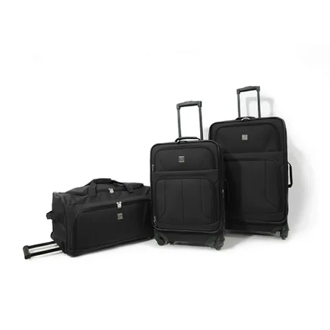 Travel in style with the Protege SoftsideThree-Piece Luggage Set. This three piece luggage set offers plenty of room for your personal times. The pieces are made of rich 600 polyester that is bothdurable and resilient.The Protege 3 Piece softside Luggage Set includes 2 spinner (25" and 20") and a wheeled Duffel to make sure you have everything you need no matter where you are traveling