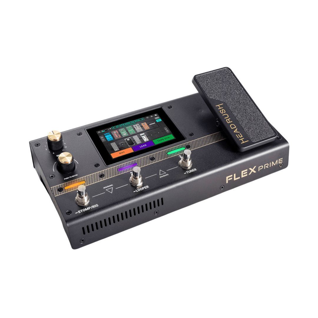 The HeadRush Flex Prime is the ultimate, compact multi-FX processor for guitar and bass players looking to expand their sonic horizons. This powerful all-in-one pedal boasts an extensive library of realistic and ultra-responsive guitar effects, amps, cabs, and microphone emulations. In addition to its impressive catalog of tonal possibilities, the Flex Prime allows players to craft the perfect tone with unprecedented ease via a high-quality 4-inch touch display and Wi-Fi for cloud-based preset or clone sharing and remote editing. Whether you're selling out arenas or diving into your first barre chords, the Flex Prime delivers the rig of your dreams with the touch of a screen.