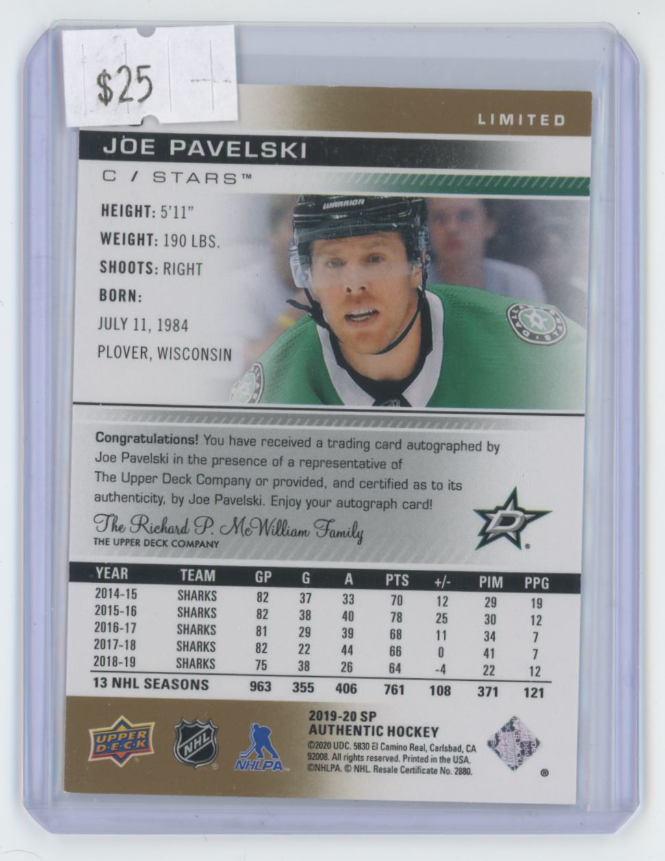 | 2019-20 SP Authentic Limited Autograph Joe Pavelski Auto Dallas Stars #38 |