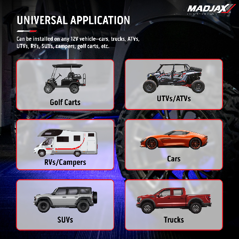 - Sync all MadJax® LUX Lighting together for a cohesive and matching look (additional MadJax® LUX Lighting sold separately)