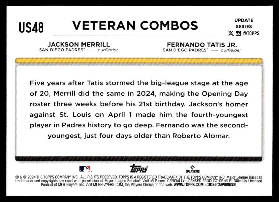 2024 Topps Update GoldFoil Jackson Merrill / Fernando Tatis Jr. San Diego Padres