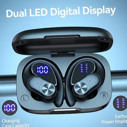 V6 Bluetooth Headphones Wireless Earbuds 88Hrs Playback Sport Ear Buds with Earhook Digital Display Charging Case IPX7 Waterproof Earbud Deep Bass Running Earphones for iOS Android Cellphone