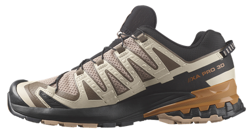 Wherever the trails lead you, Salomon XA Pro 3D V9 Hiking Shoes for Men comfortably power you through adverse conditions. Breathable textile mesh and synthetic uppers with secure insteps and lock heels down for a secure fit. Reinforced toe caps boost protection. Built around a low profile, ultra-stable 3D Advanced Chassis, this shoe optimizes motion control and promotes stability and underfoot protection in all directions. Made of a sticky and durable All Terrain Contagrip rubber compound, the XA Pro 3D V9's outsoles utilize a special lug geometry with 3.5mm lugs to optimize grip on a variety terrain. 1-pull lacing system delivers a quick, custom fit and a pocket secures laces out of way after adjustment. 11mm drop. Avg. Wt.: 11.4 oz. Imported.