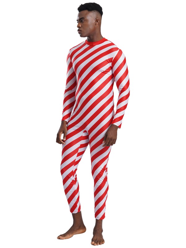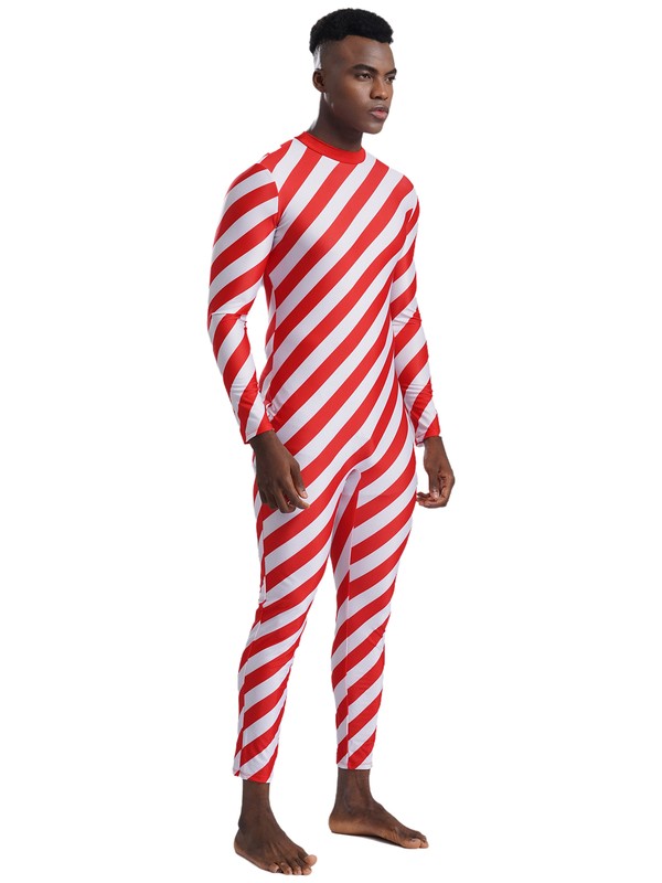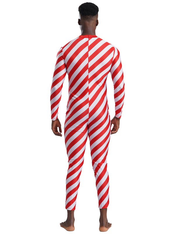 Designed with mock neck, long sleeves and long bottoms, back zipper closure, contrasted oblique stripes, fits for Christmas party.