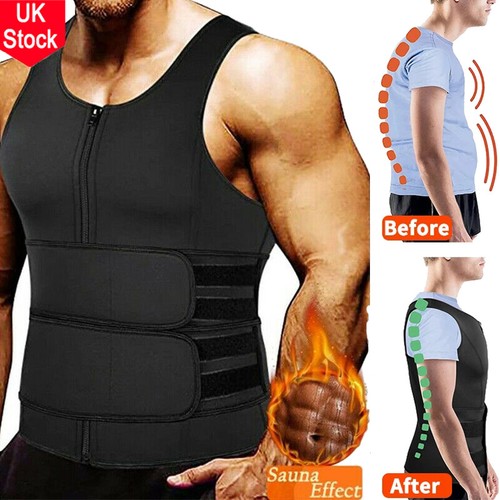 Description Color:Black,Gray Size:S,M,L,XL,2XL,3XL Material:Polyester,Neoprene,Nylon Speed Up:Stimulate sweat more that 5 times than usual Weight Loss:Accelerate the fat burning, speed up metabolism to reduce your weight Upgrade:Designed with super smooth zipper for easy wear on and off. Wider Belts:2 Wide Velcro can adjust the different level of compression 4x5mm Steel Bones:More close to the skin and flatten the tummy effectively Correct postures:Correct the improper postures caused by overwork or injuries Warehouse Location:UK Men Sauna Sweat Vest: SWEAT THREE TIMES MORE Lightweight durable sweat neoprene fabric tones core by increasing thermal temperature and calorie burn to enhance your workout performance. This waist trainer vest will stimulate sweating around your abdomen and lower back area, accelerate the belly fat burning process and help you lose water weight to shape and reduce the waist and abdomen, and get a strong core and really great abs! Waist Trainer+ Sauna Suit Vest for Men: Full and Double Coverage for the tummy, providing DOUBLE compression and FIRM 360°tummy control to tighten and shape the waist and abdomen,more calories burned, more sweat comes, makes the abdomen effect more obvious. It is a greater enhancer to help you with your goals! Back Support Compression top: This sauna vest can also offer you lumbar support. The waist trainer vest can also improve posture by providing adequate compression for the lower back and muscles. It is the best fitness equipment for all kinds of exercises in the gym to prevent fatigue and injury during exercise. Weight Vest for training: Great for back support, power lifting, boxing, cardio and everyday wear. Easy to wear and take off. Neoprene material absorbs sweat while increasing body temperature, so you're always dry and fresh on the outside. The men's sauna tank top can be worn under your regular shirts which helps you reach your fitness goals faster and easier.