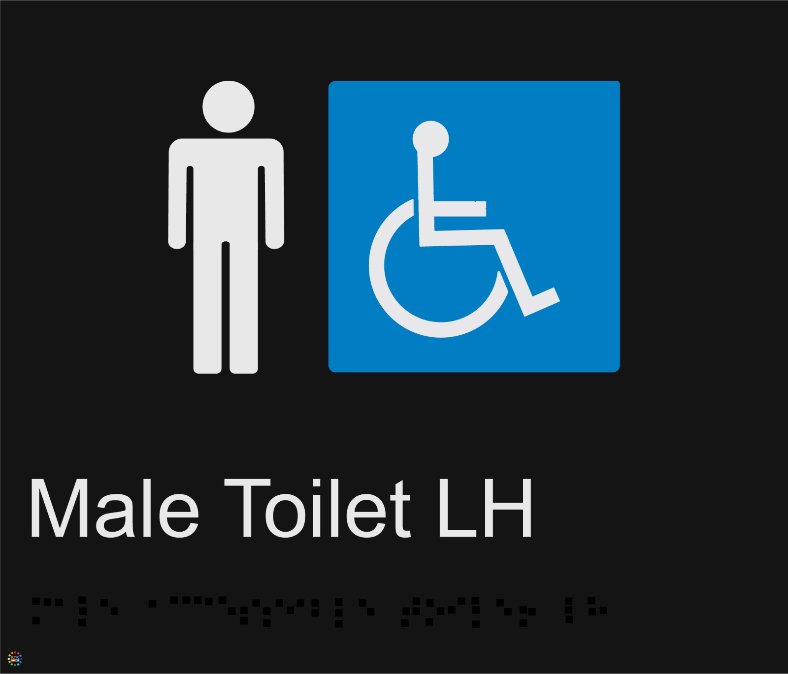 Enhance accessibility and provide clear directional guidance with the Male Accessible Toilet LH Braille and Tactile Sign (BR89), designed to guide individuals toward left-hand accessible male toilet facilities in public buildings, workplaces, and community environments. This sign features raised tactile text, Grade 1 Braille, and a clear male accessible toilet symbol oriented for left-hand entrances, assisting people with low vision to confidently locate the correct facility. Ideal for offices, schools, hospitals, retail centres, transport hubs, and hospitality venues, it promotes safe movement while supporting consistent accessibility communication throughout your premises. Manufactured from durable 3mm thick PVC, the sign is available in a silver background with black text or a black background with white text, providing strong contrast and long-lasting readability in indoor or sheltered outdoor areas. Weather-resistant, impact-resistant, and supplied with secure double-sided tape, it allows fast and reliable installation on smooth, clean surfaces. Fully compliant with BCA/NCC Part D4D7, Specification 15, and AS1428.1-2009, the sign ensures dependable guidance and clear identification of left-hand accessible male toilet facilities for all users.HEAVY-DUTY BUILD: Made from 3mm PVC with a single-piece moulded design that enhances hygiene, prevents dirt accumulation, resists cracking or delamination, and endures frequent handling and routine cleaning in high-traffic areas where long-lasting tactile guidance is essentialFINISH VARIANTS: Offered in two high-contrast options, including a silver background with bold black text for a contemporary professional appearance or a black background with bright white text that improves readability for low-vision users, ensuring clear visibility in offices, educational buildings, healthcare facilities, and public spacesPRACTICAL DIMENSIONS: Produced in a 210mm x 180mm format that provides ample room for tactile lettering, accurately spaced Braille, and a well-organised layout while remaining suitable for mounting on doors, walls, and entryways without obstructing surrounding architecture or creating visual clutterRELIABLE FUNCTIONALITY: Engineered to resist environmental exposure and interference, maintaining clarity and long-term performance whether installed indoors along busy corridors or outdoors in exposed areas where sunlight, moisture, frequent handling, and temperature fluctuations could otherwise compromise readability and durabilityEASY INSTALLATION METHOD: Supplied with strong double-sided tape for fast, tool-free mounting on smooth, clean surfaces, providing secure adhesion suitable for rapid accessibility upgrades, efficient repositioning, and stable placement on doors, walls, and entry points where tactile guidance is required