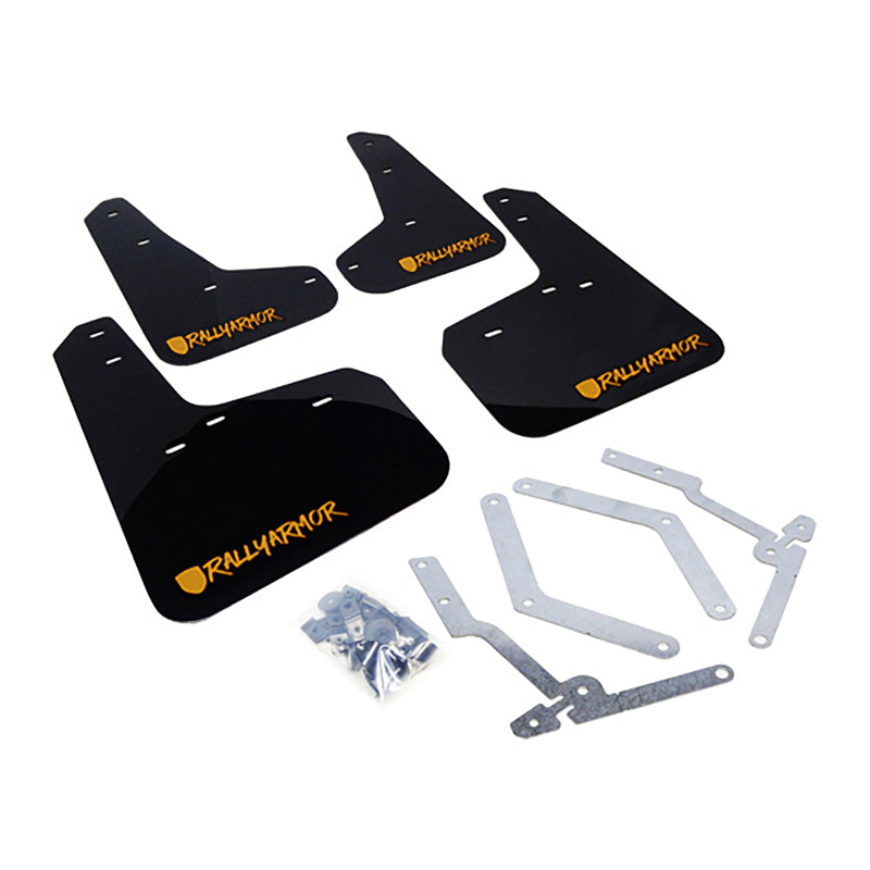 Rally Armor 12-19 Ford Focus ST / 16-19 RS Black UR Mud Flap w/ Tangerine Scream Logo
