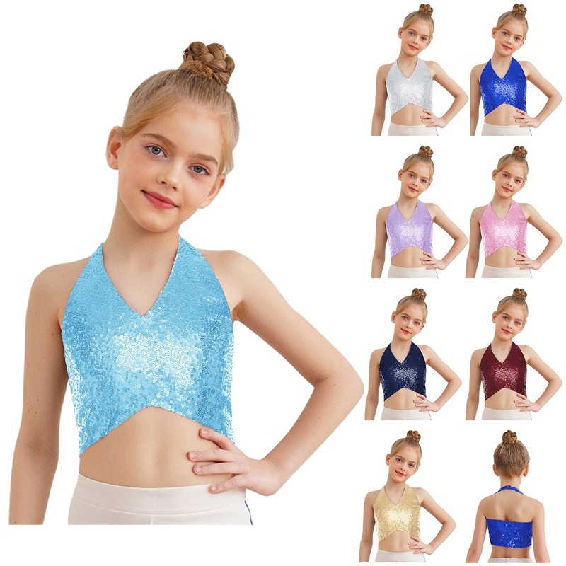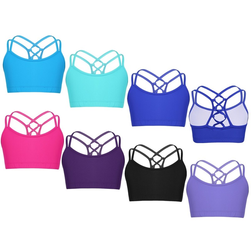 Kids Girls Tops Gymnastics T-Shirts Ballet Dance Crop Top Stretchy Activewear