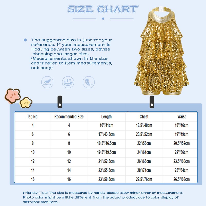 Skin-friendly farics, breathable and comfortable to wear. Beautiful and sparkly dancewear for your princess.