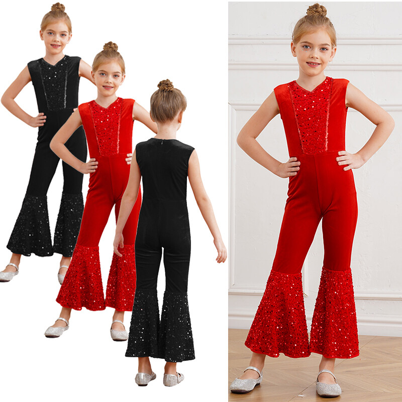 Children Girls Dress Shiny Costume Dancewear Unitard Jazz Leotard Glitter Dance