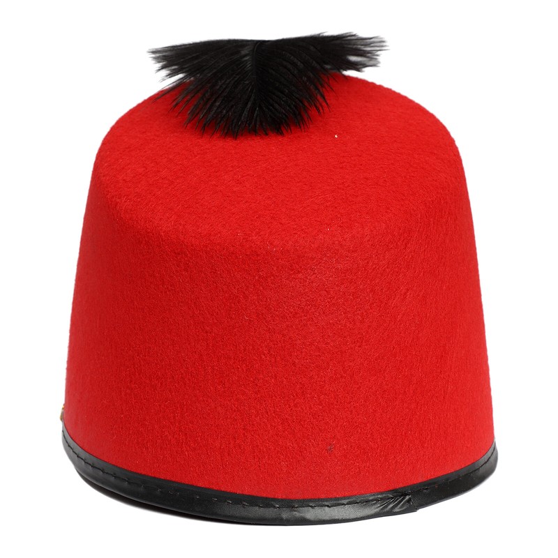 The hat is decorated with a plastic badge and gold braid, and topped with a bright color feather. Very eye-catching and fashionable, making the wearer the focus of the crowd.