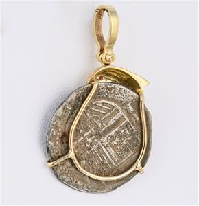 This coin was minted at the Potosi, Bolivia mint 1556-1621. Total weight of the pendant, including coin, is 5.9 grams.