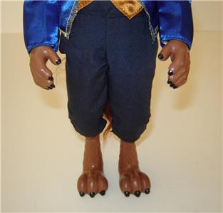 This listing is for the above shown 12" high Beast Doll/Figure from the "Beauty and the Beast" movie and available from the Disney Store. The figure is made from durable plastic and has poseable/bendable arms and legs with a head that swivels 360 degrees. The figure and the clothing show little to no wear and is in what I would call VERY GOOD TO EXCELLENT condition. I have included lots of photos so that you can judge the condition for yourself. PLEASE NOTE: This listing is for the doll/figure only there is no original packaging included.