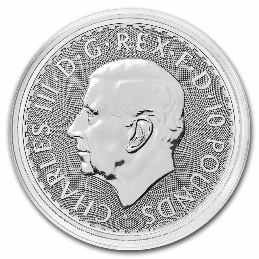 Add this 2025 10 oz Silver Britannia featuring the effigy of His Majesty King Charles III to your cart today!