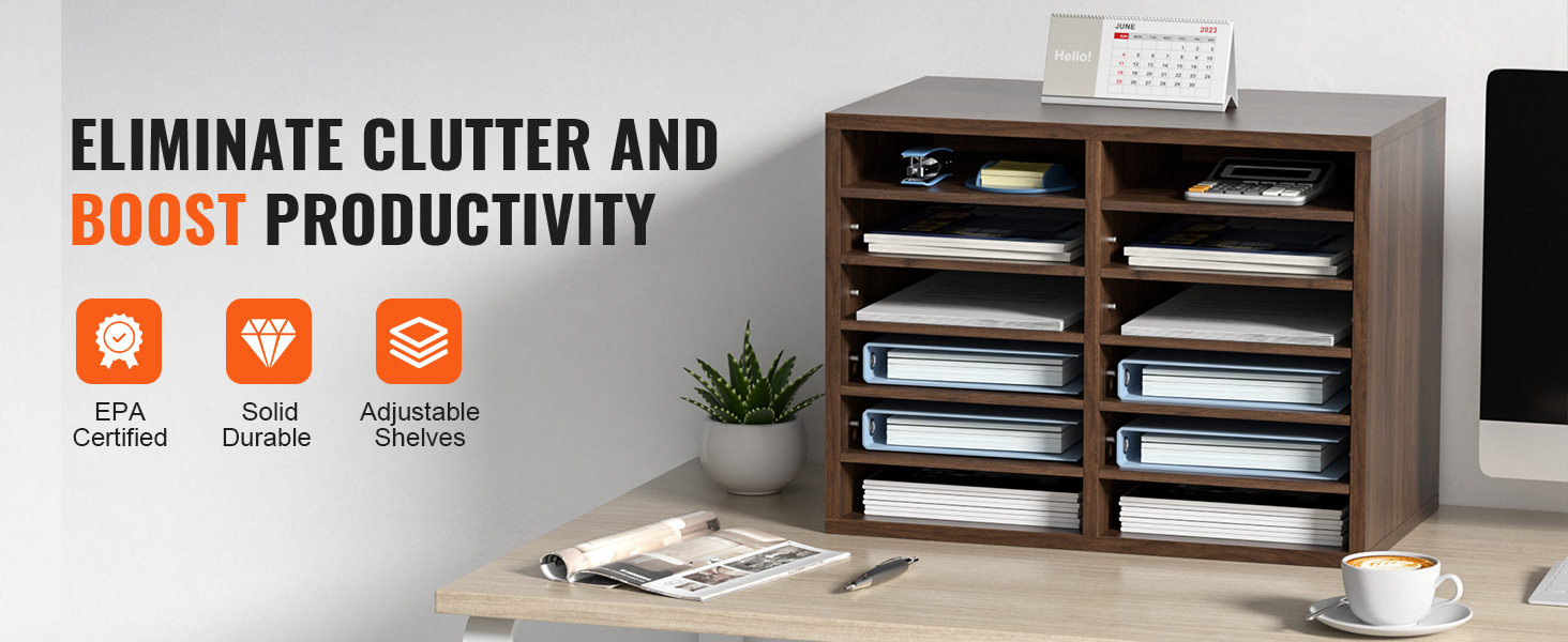 - Sturdy Construction: Our wood file sorter is mainly crafted from P2 chipboard that is EPA-certified, you and your family can rest assured to use. Its surface is polished smoothly, making it waterproof, scratch-resistant, and easy to clean, perfect for busy workspaces.