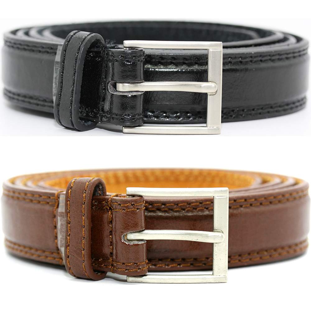 Superb quality durable belt, 1" (25mm) Wide. It’s Man-made with Leather Trim/Lining and features a Silver Brushed Metal Buckle. This belt would look great with jeans or trousers.