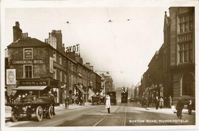 REAL PHOTOGRAPHIC POSTCARD OF BUXTON ROAD, HUDDERSFIELD, WEST YORKSHIRE.