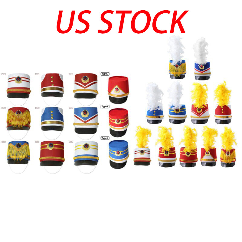 Ceremonial Hat Snare Drum Team Hat Command Hat Contrast Color High Hat with White Feathers Decorated.