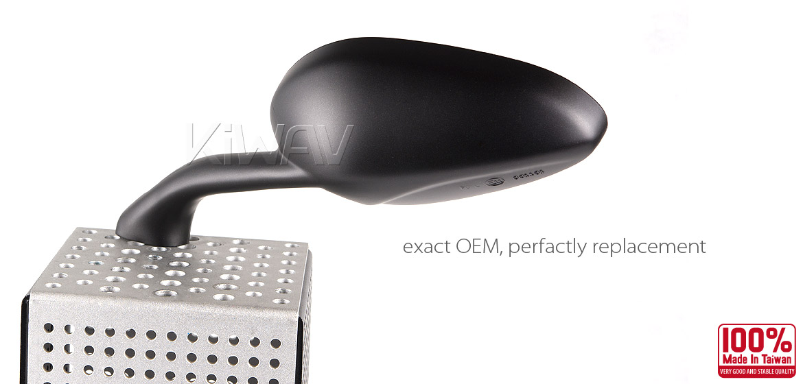 - OEM replacement mirrors for your bike. Street Legal E-Mark Certified Mirror. Engineered in Taiwan, Certified for the World.
