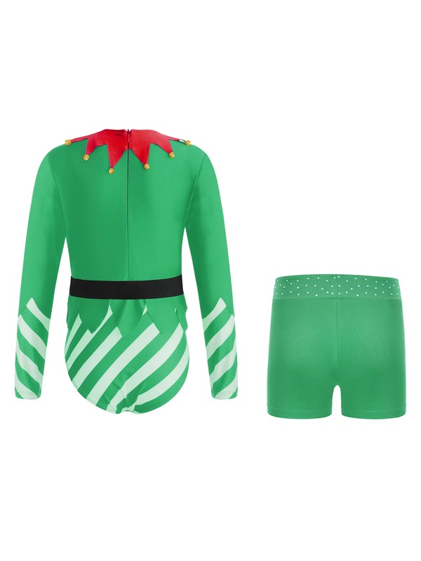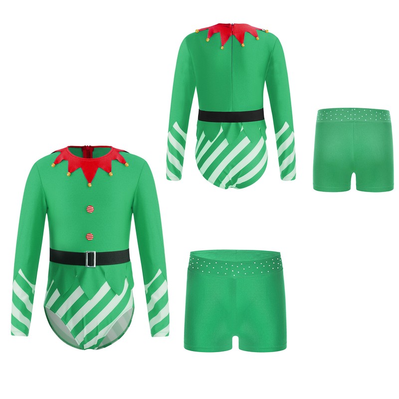 Kids Girls Bodysuit With Belt And Shorts Set Unitards Xmas Figure Skating Dance