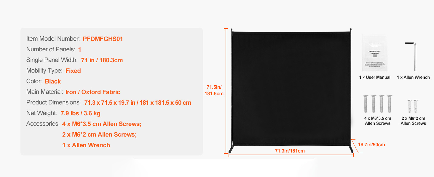 Easy to Move: The privacy screen measures 71.3×71.5×19.7 in / 1810×1815×500 mm and 7.9 lbs. It's lightweight and easy to move to anywhere you want.