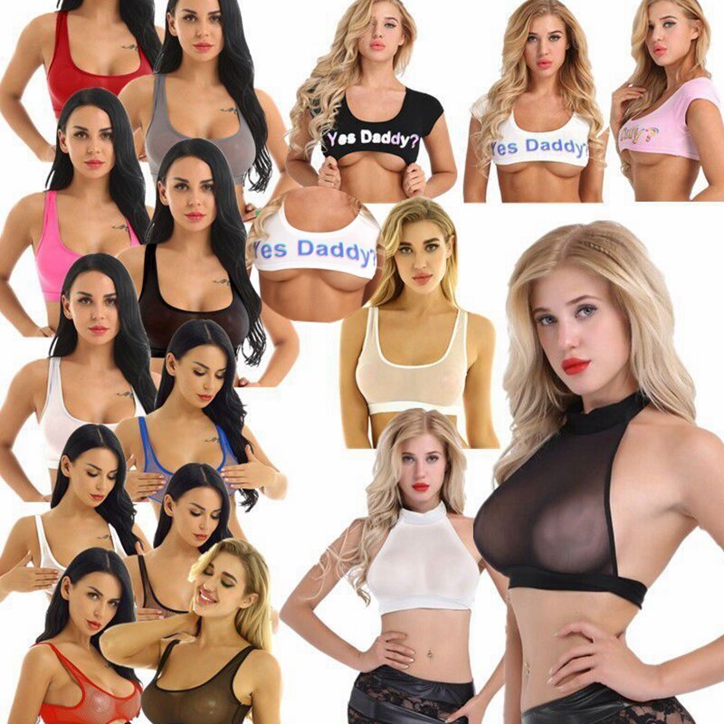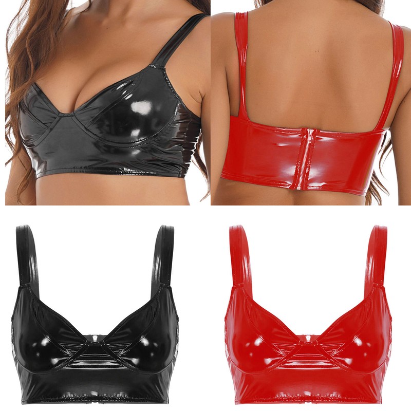 Womens Sexy See-Through Hollow Out Lace/PVC Leather Bra Bralette Bras Lingerie