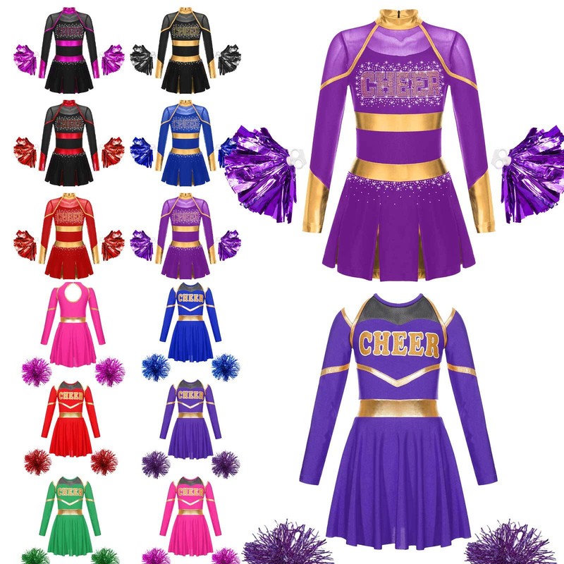 Girls Cheerleading Uniform Dress Cheer Leader Cosplay Outfits for Kids Carnival