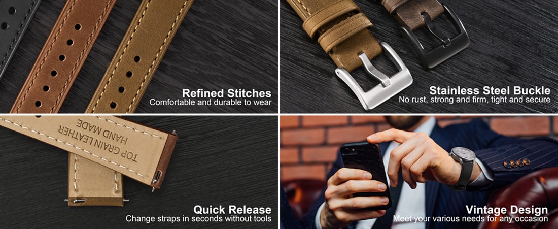 Elevate your timepiece with these premium vintage leather watch straps.