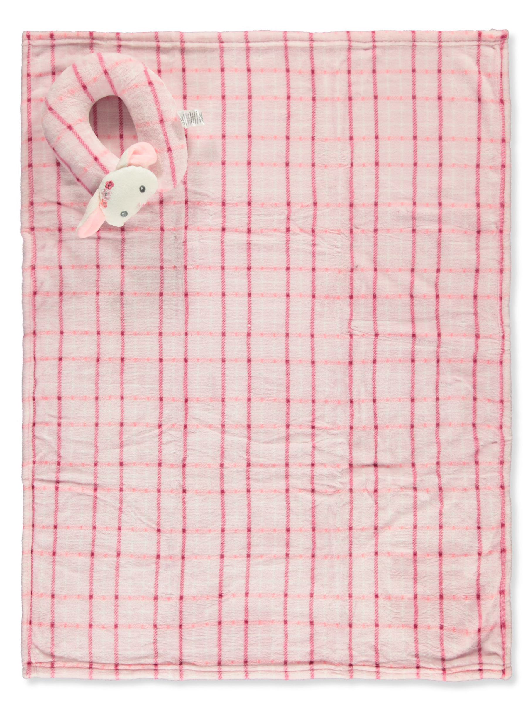 Duck Duck Goose Baby Girls' 2-Piece Baby Blanket With Neck Pillow - pink, one size