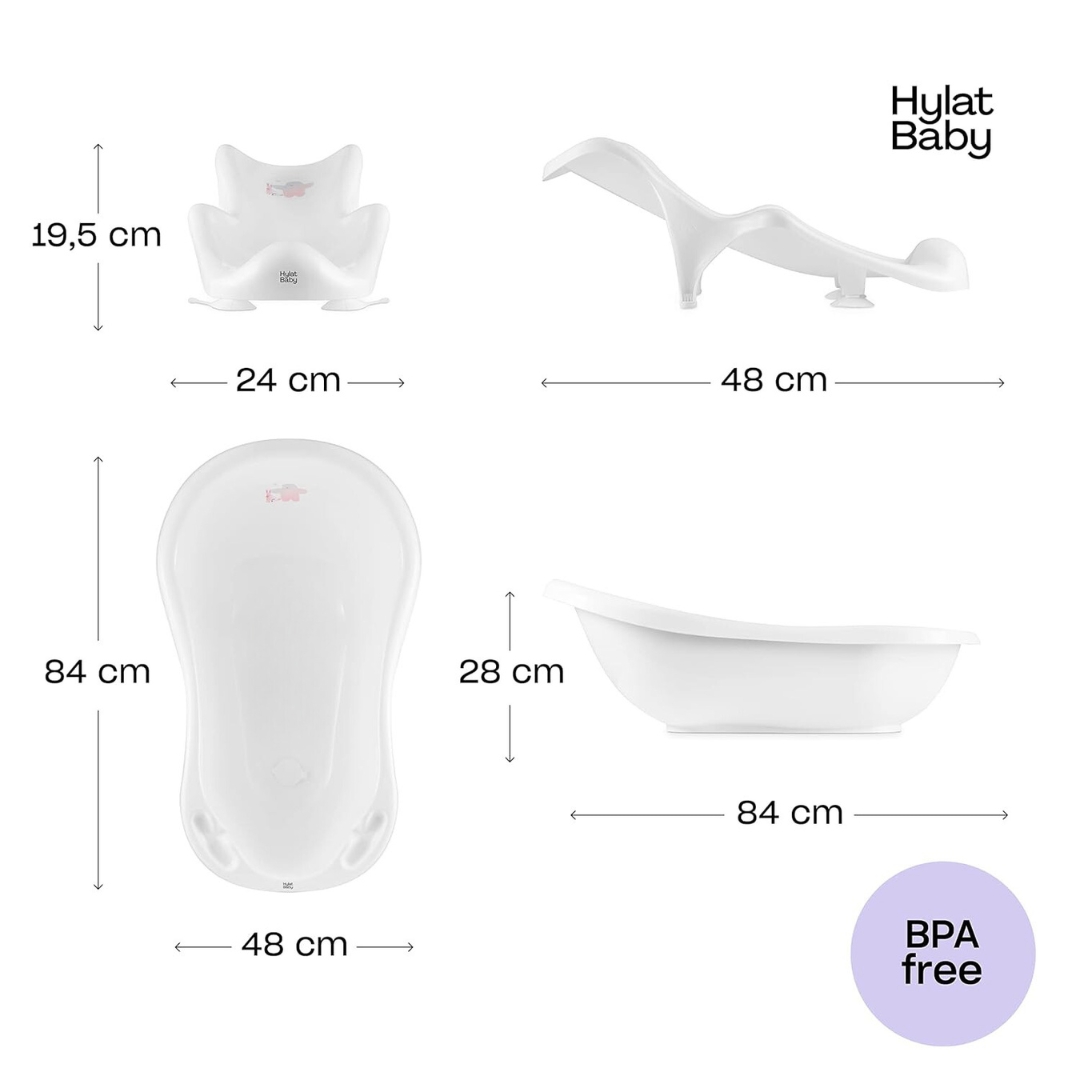 Hylat Baby Spar Set, 6 Teile: Baby Badewanne mit Gestell & Stöpsel, Ablaufschlauch mit einer Länge von etwa 70 cm, Töpfchen, Kinder Toilettensitz und Tritthocker.